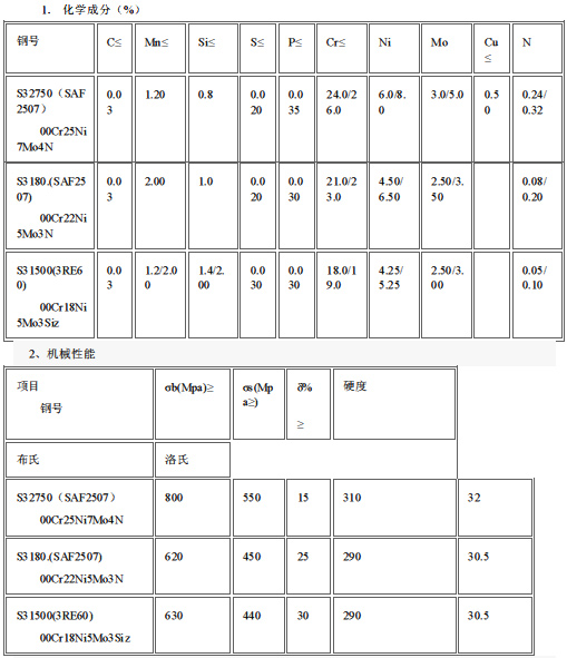 超級雙相不銹鋼型-標(biāo)準(zhǔn)牌號:UNS S32750(25Cr-7Ni-3.7Mo-0.3N)